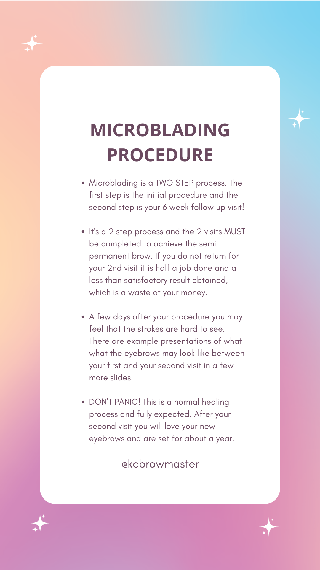 Before microblading, the technician will measure your brows to determine the best size, width, and depth that suits your face. You will be able to see the stencils applied and approve the shape prior to beginning.